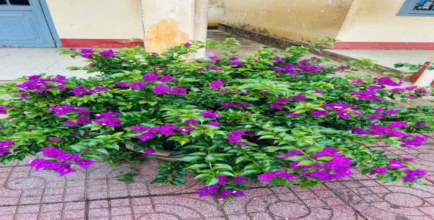 Vườn hoa trước cổng Trường Tiểu học Kim Đồng